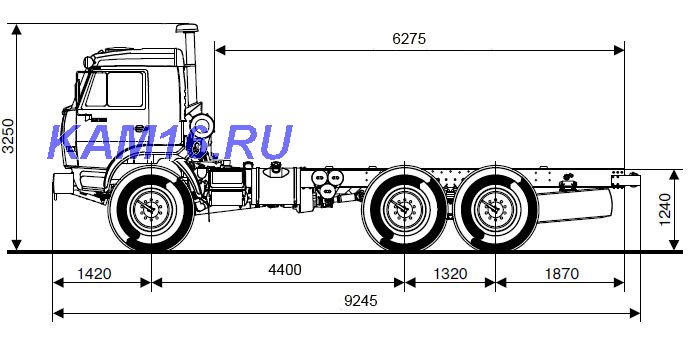 Шасси 6*4, длина рамы 7 560 мм, грузоподъемность 16 тонн