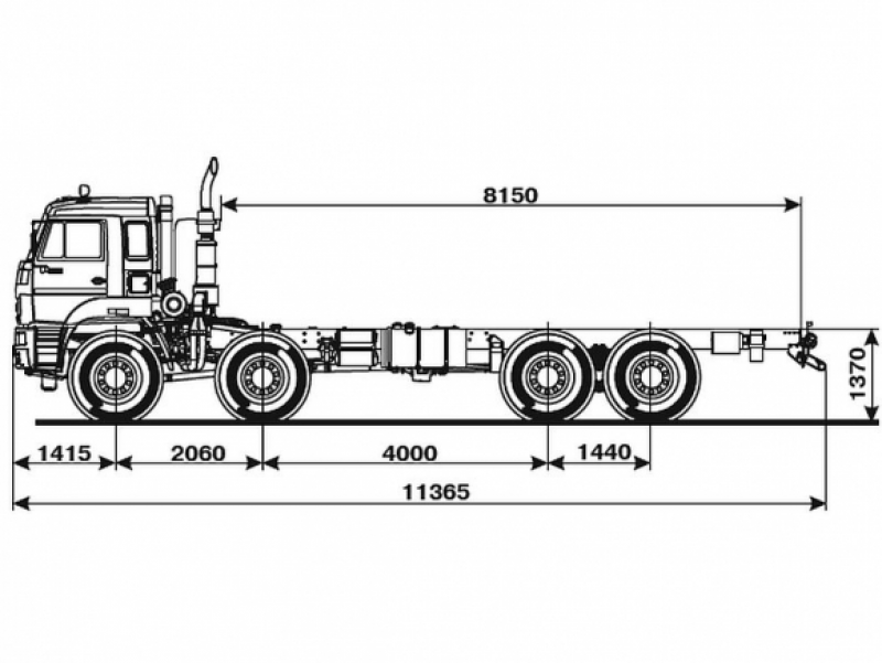 Шасси 6*4, длина рамы 5 970 мм, межосевое растояние мм, грузоподъемность 12 тонн
