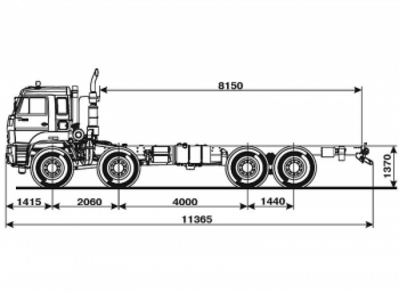 Шасси 6*4, длина рамы 5 970 мм, межосевое растояние мм, грузоподъемность 12 тонн