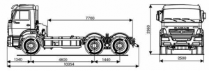 Шасси 6*4, длина рамы 5 970 мм, межосевое растояние мм, грузоподъемность 12 тонн
