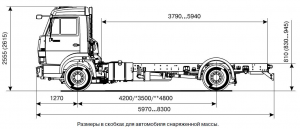 Шасси 6*4, длина рамы 5 970 мм, межосевое растояние мм, грузоподъемность 12 тонн