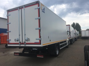 -фиксаторы двери в открытом положении; -на боковых стенках защита от удара двери оцинкованная; -пластиковые брызговики; -кронштейны крепления брызговиков; -кронштейны крепления фургона к шасси. |