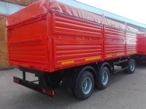 Боковая разгрузка зерновоза самосвала позволяет выгружать зерновые культуры в обе стороны. Второй вариант используют только при наличии специальных условий разгрузки на объектах аграрного комплекса.